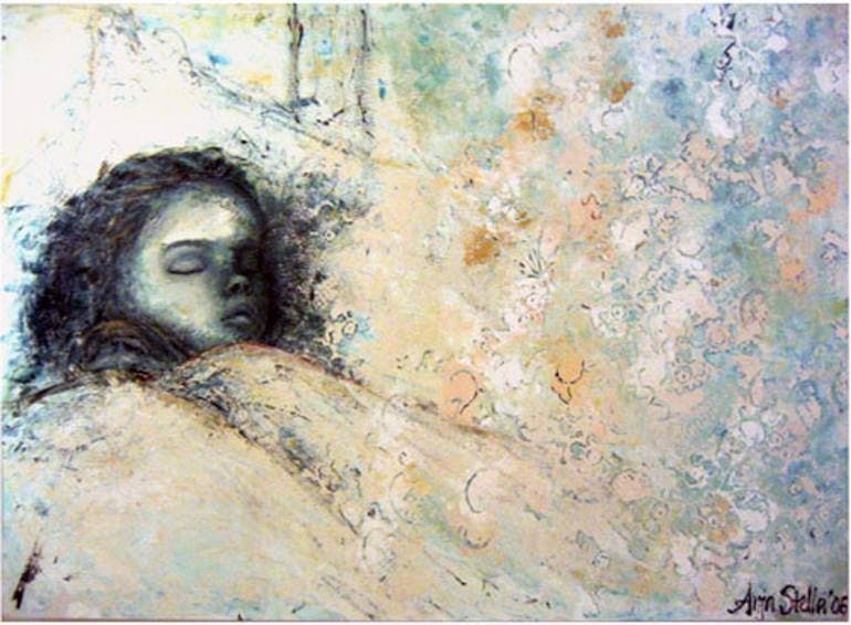 This painting was made in school. It scared the other students, so I softened it down a lot, especially around the eye area. It still bothers me, that It´s spirit got erased in the process of pleasing the audience.
